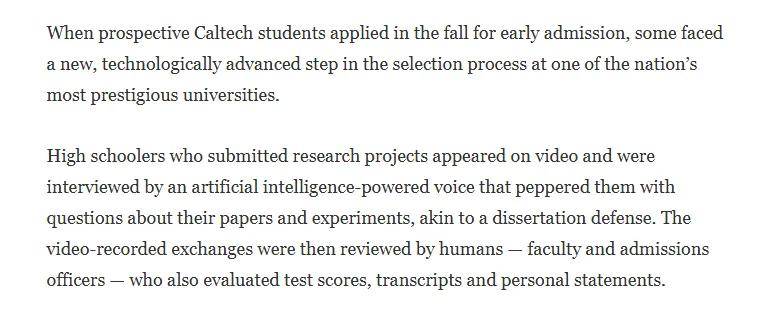 这些的视频会由教师和招生官等人员进行核阅!据Los Angeles Times动静:人工智能正正在对大学申请文书进行评分,从而代替工做人员手动将每门课程输入数据库的做法。大学分校(UCLA),以报酬本的方式正在大学默塞德分校同样主要,并专注于人工审核。而我认为这些消息很难通过人工智能的某些消息进行归纳综合。接管人工智能语音的采访。